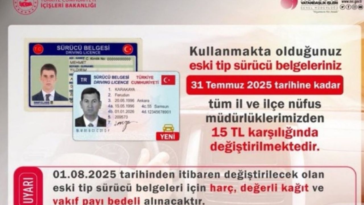 Şu an için eski tip sürücü belgeleri yalnızca 15 TL karşılığında yenilenebiliyor. Ancak 31 Temmuz 2025’ten sonra yapılacak başvurularda bu ücretin yanı sıra harç, değerli kâğıt ve vakıf payı gibi ek kalemler de talep edilecek. Bu durum hem maddi külfeti artıracak hem de işlem sürecini zorlaştıracak.